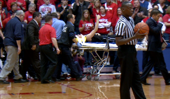 On Saturday, Dayton’s Matt Derenbecker welcomed Butler’s Rotnei Clarke to the A-10 with a hard foul on a fastbreak that sent Clarke head first into the basket stanchion, resulting an a stretcher-assisted trip to a local hospital where Clarke was scanned and eventually diagnosed with a sprained neck.