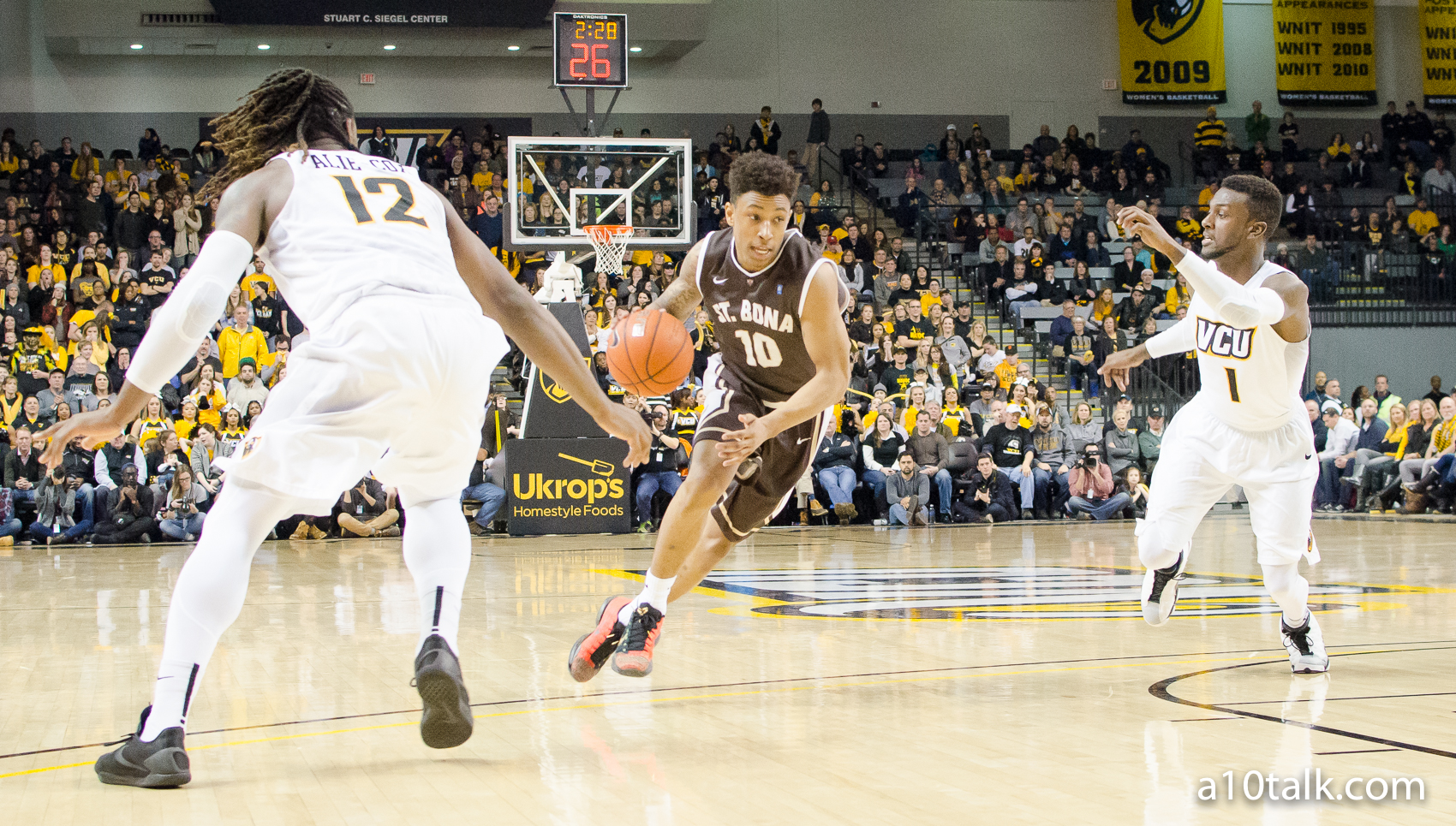 Let’s look at some stats. Adams is averaging 21.6 points and 6.6 assists per game, both of which lead the conference. Jaylen Adams does just about everything else for this team as well. He’s directly involved in 28.6% of the Bonnies’ possessions, which is the 4th highest in the conference. Whenever Adams is on the floor, he’s making positive plays. He’s got the 4th best steal percentage in the A-10, and he’s great at getting to the free throw line as well. Adams ranks 2nd in the conference in fouls drawn per 40 minutes, and he converts at the free throw line 82.5% of the time. Needless to say, Jaylen Adams is as efficient as he is talented.
