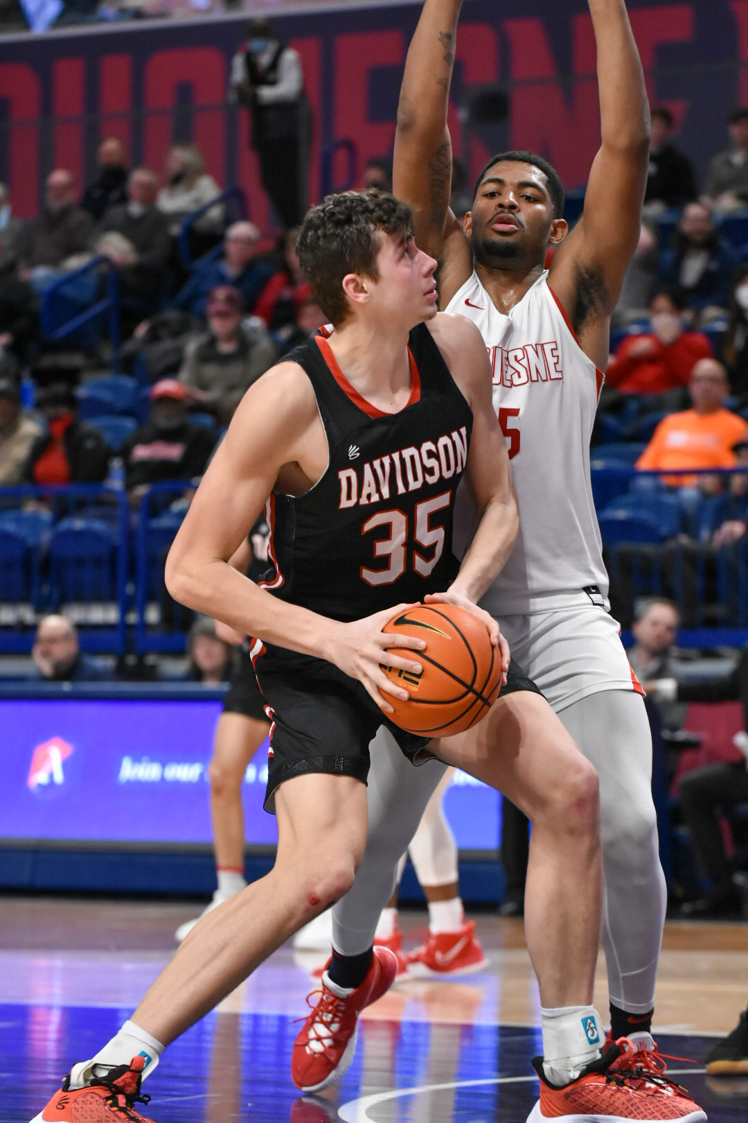 PITTSBURGH — The Duquesne Dukes (6-19, 1-12 A10) fell to the league-leading Davidson Wildcats (22-4, 12-2 A10) Wednesday evening, 74-50, at the UPMC Cooper Fieldhouse. The last time these two teams met, the Dukes gave the Wildcats a run for their money, cutting a 17-point second half deficit to just six points before eventually falling 72-61 at Belk Arena.