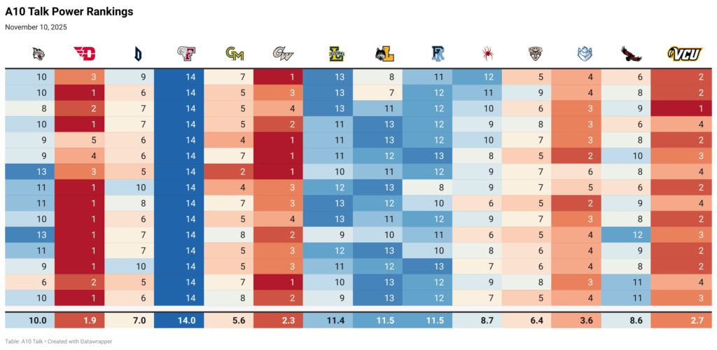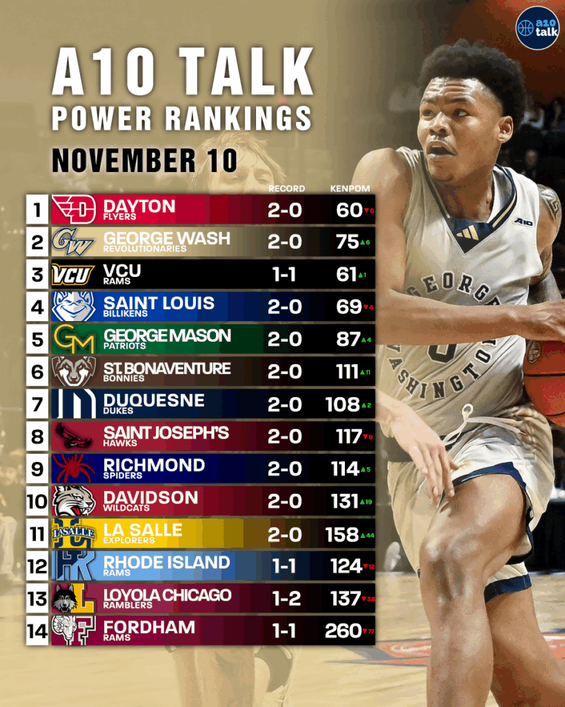 A10 Men’s Basketball Power Rankings – November 10, 2025