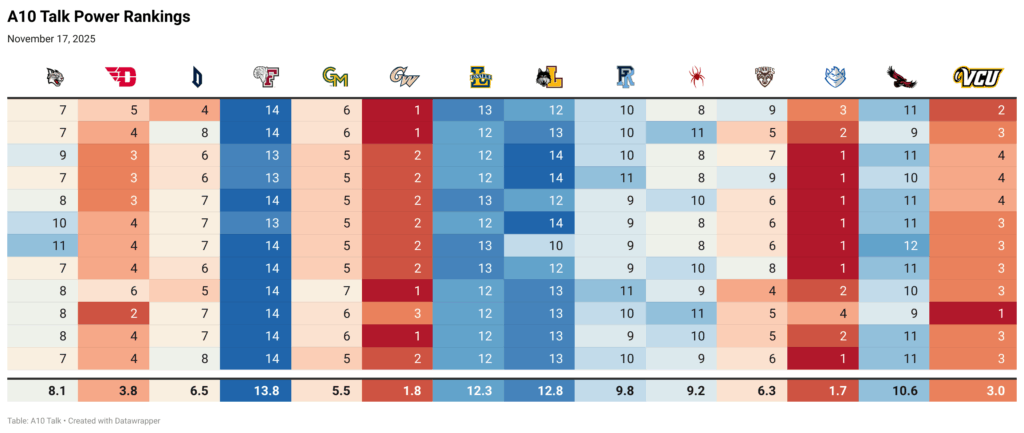 A10 Men’s Basketball Power Rankings – November 17, 2025