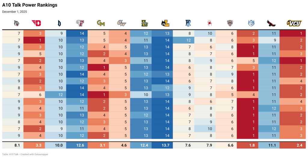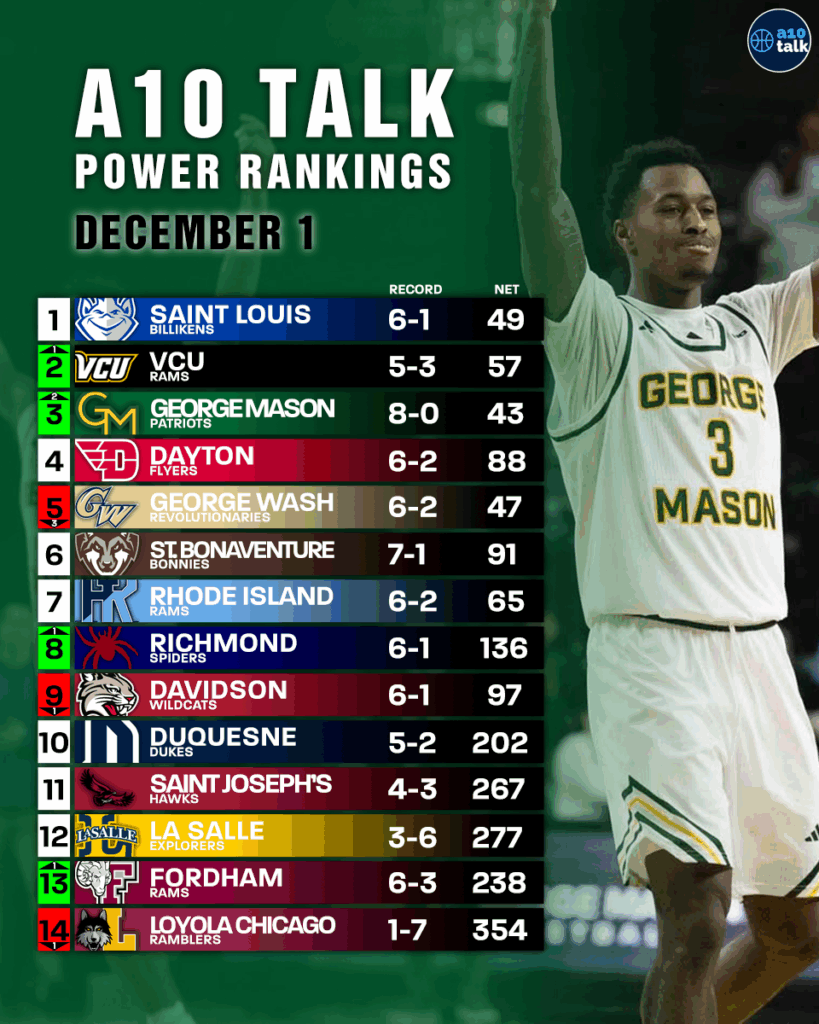A10 Men’s Basketball Power Rankings – December 1, 2025