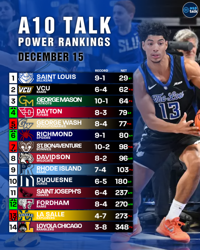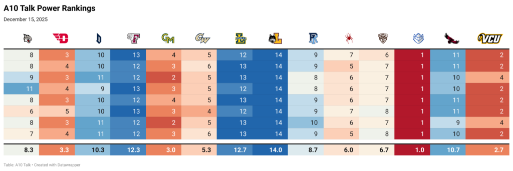 A10 Men’s Basketball Power Rankings – December 15, 2025