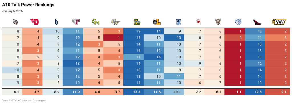 A10 Men’s Basketball Power Rankings – January 5, 2026